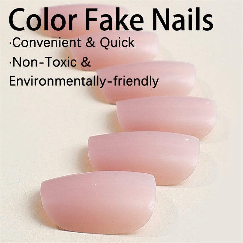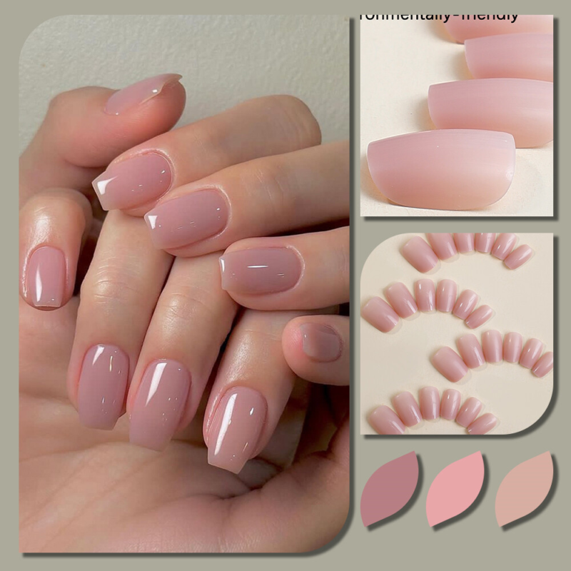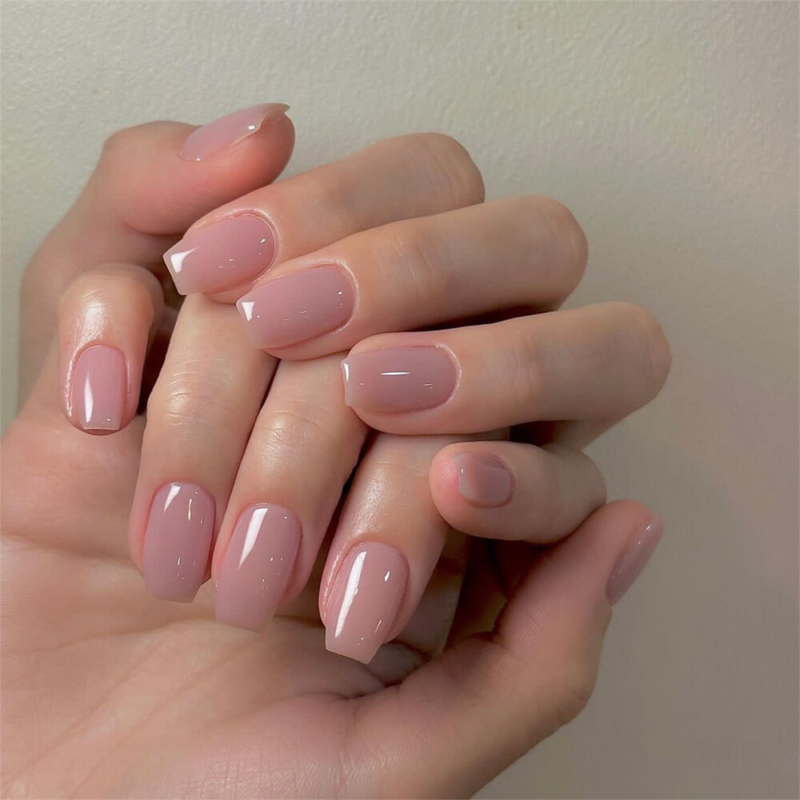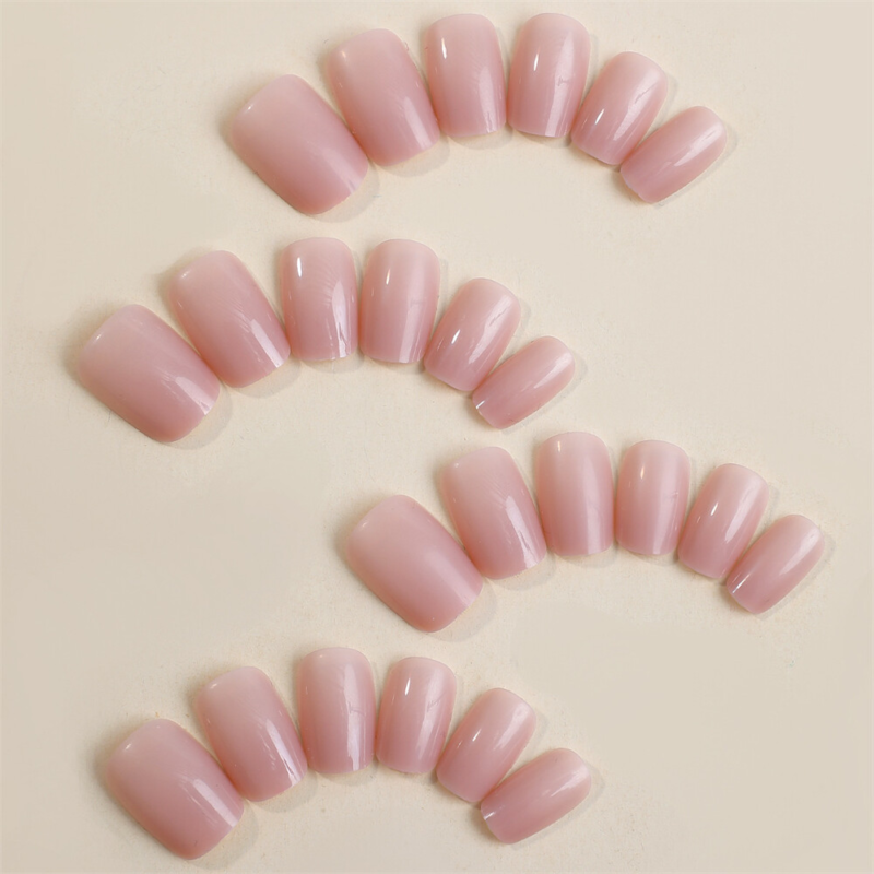 Nude Color Glossy False Nail Short Square Press on Nails for Nail Art 24pcs