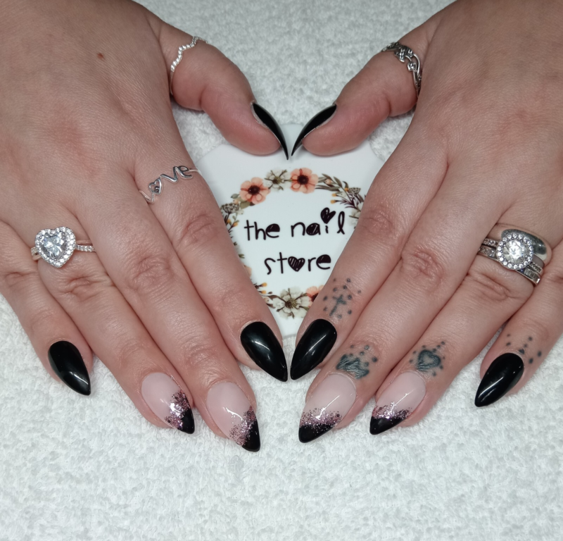 Nude Pink Black Sparkly Gel Polish Press On False Nails