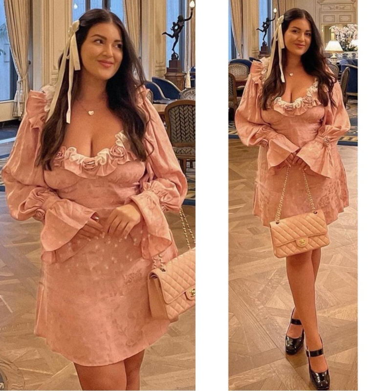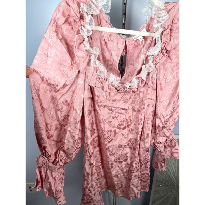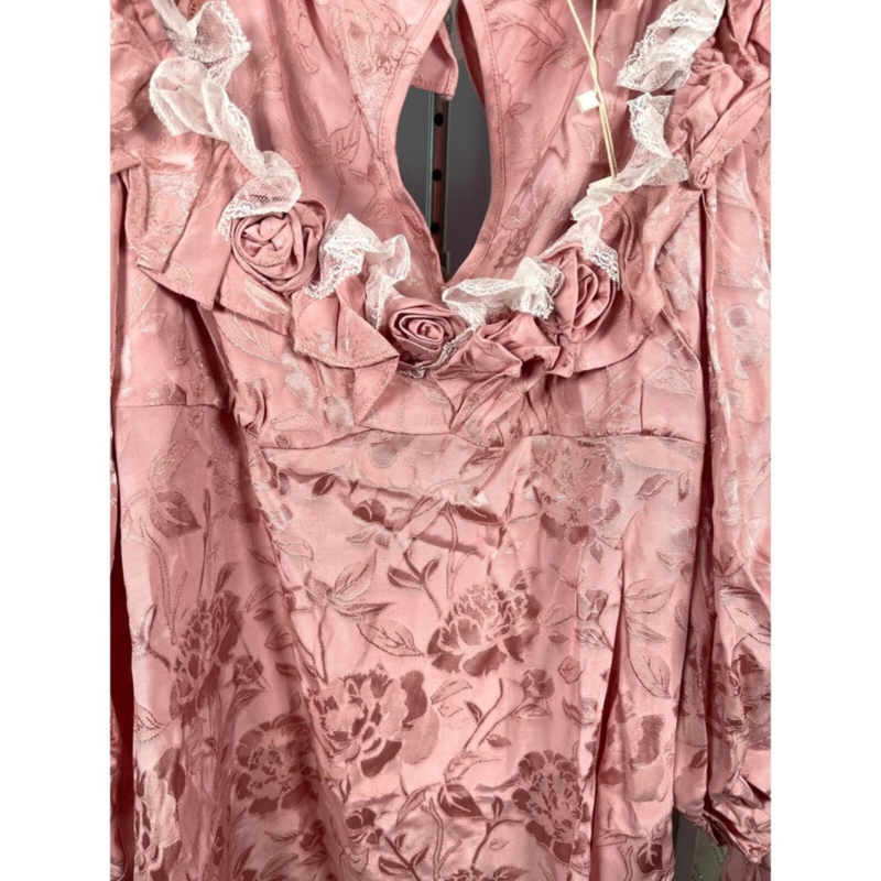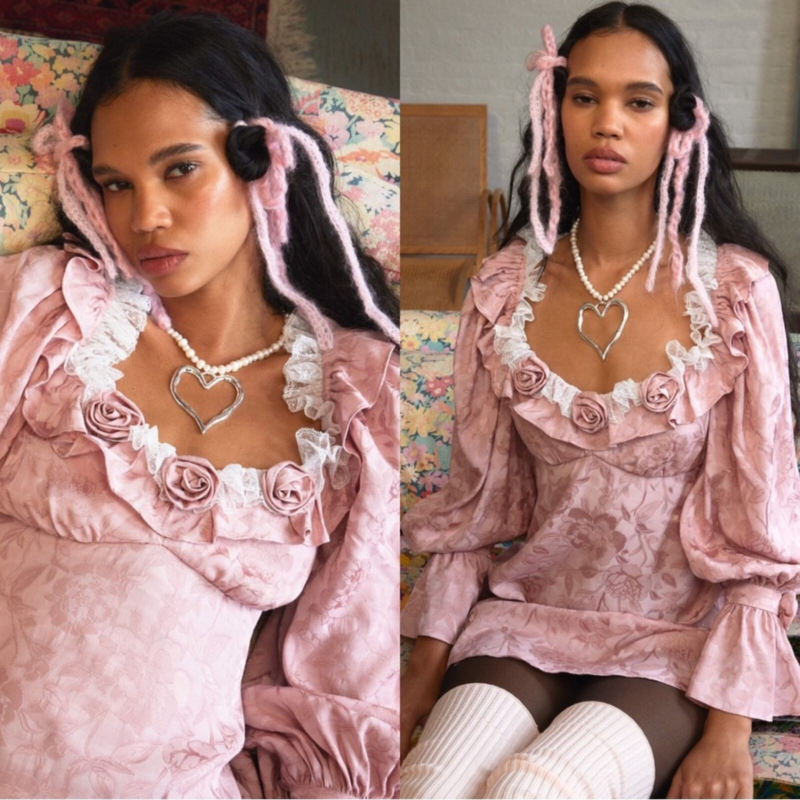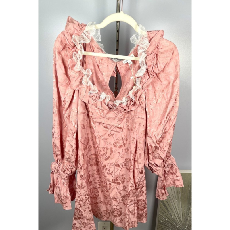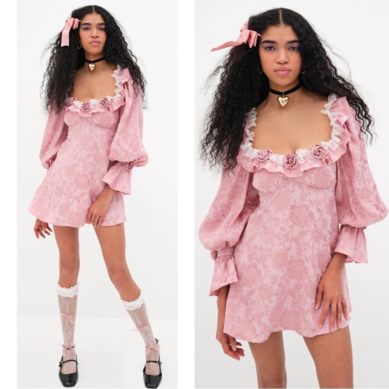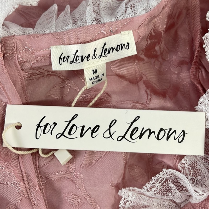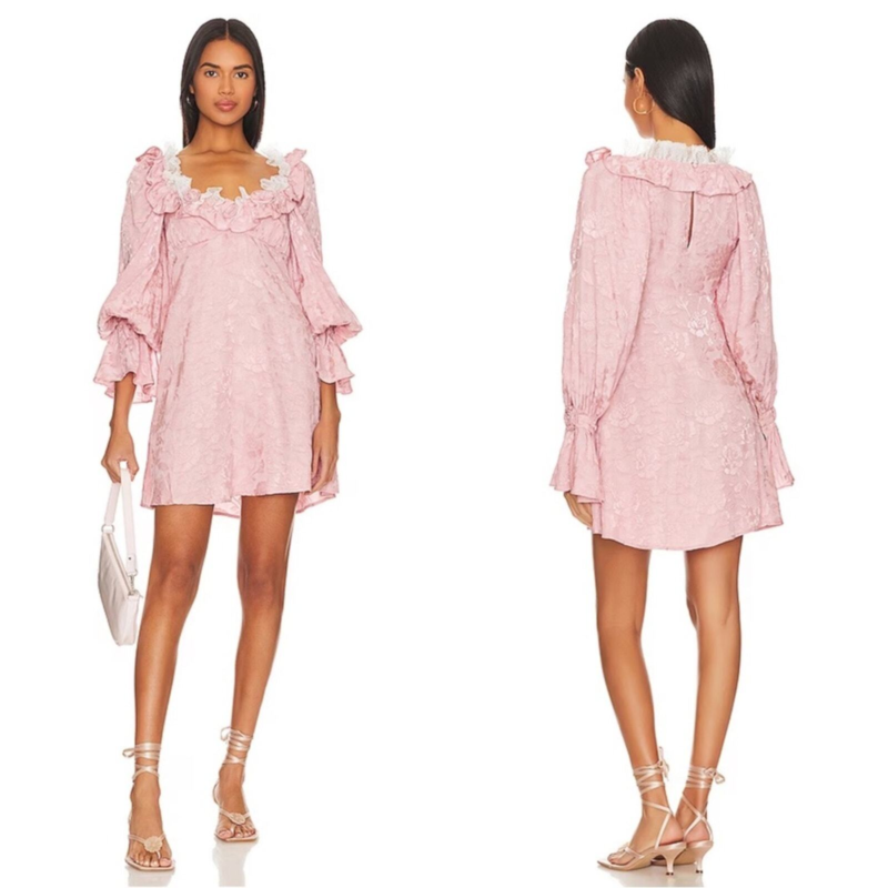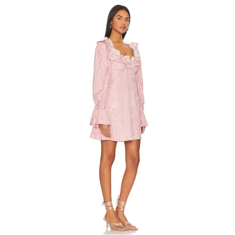 NWT For Love and Lemons Pink Rosalia Ruffle Floral Jacquard Mini Dress Size M