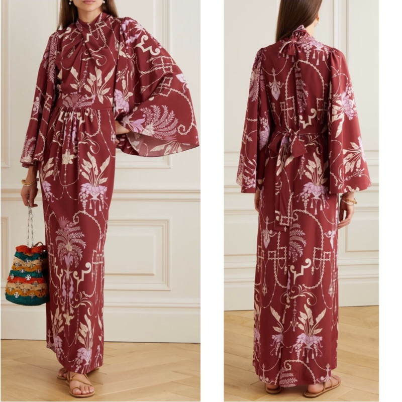 NWT JOHANNA ORTIZ Silk Hanging Garden Floral Printed Kimono Maxi Dress Sz 0