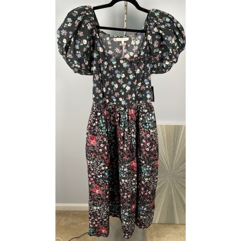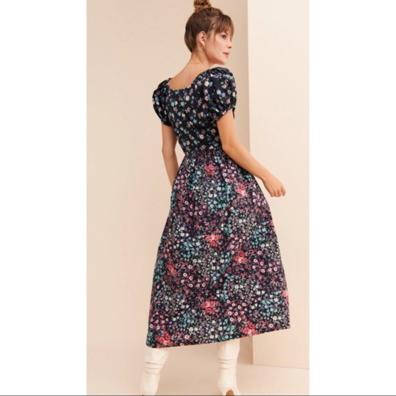NWT LoveShackFancy Lais Floral Mixed Pattern Puff Sleeve Maxi Dress & Bow Size 4