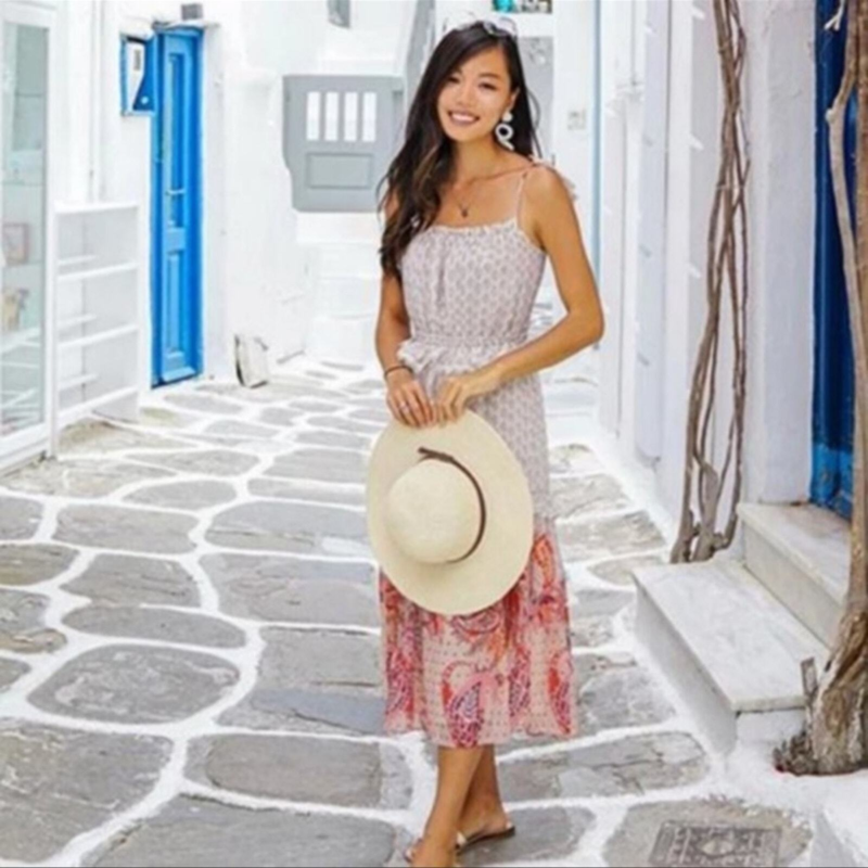 NWT MISA Los Angeles Floral Paisley Dionica Ruffle Trim Tiered Midi Dress Sz M