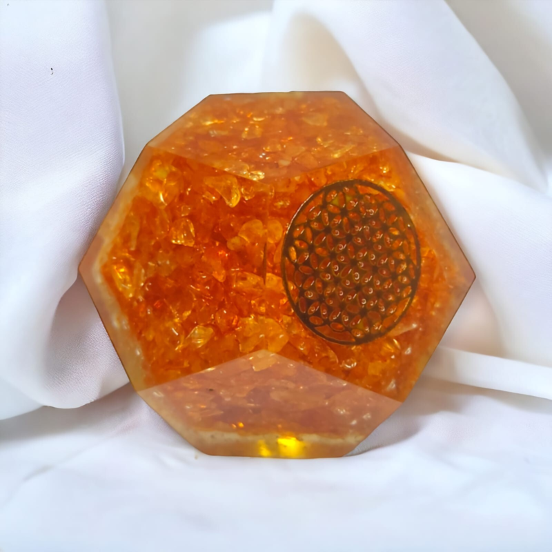 Orange Aventurine Orgonite Dodecahedron Crystal Flower Of Life Healing 40-45MM