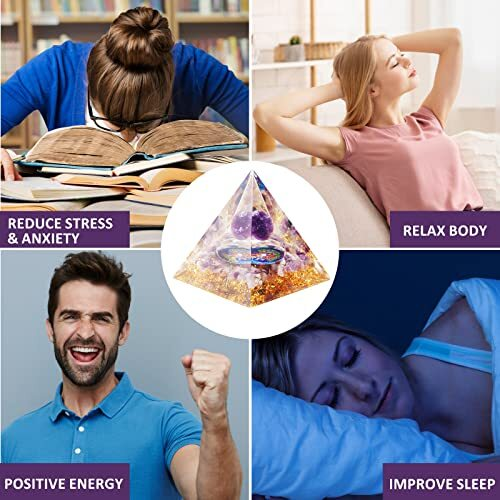 Orgone Pyramid - Orgonite Healing Amethyst Crystal Sphere Amethyst+Tree Of Life