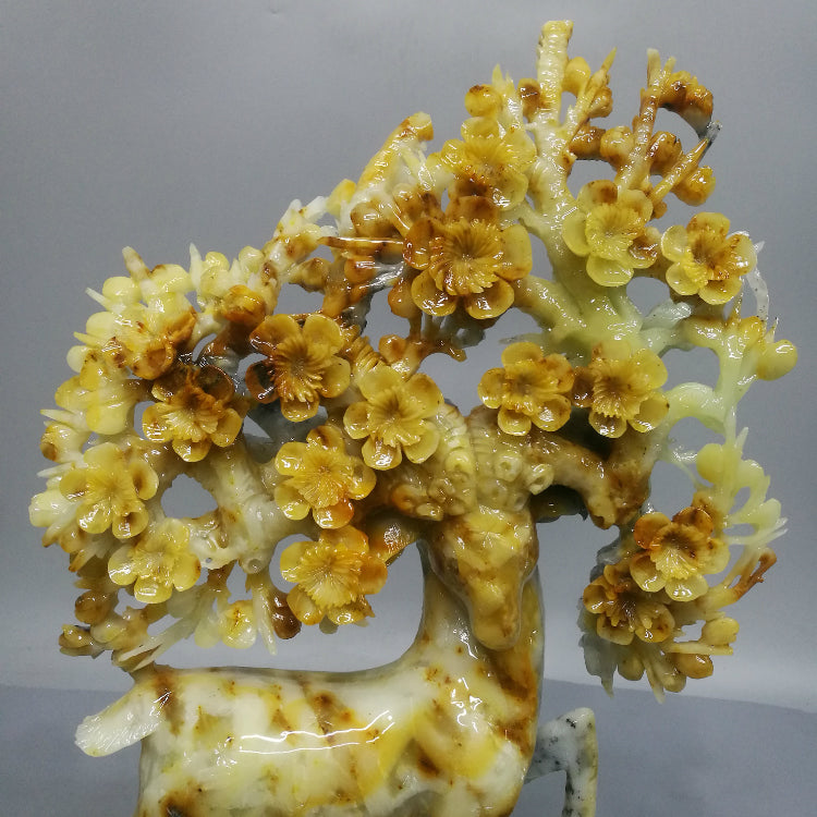 Oriental natural Xiuyu Sika Deer ornaments, hand carved, Liaoning Xiuyan Zhaocai living room office clothes