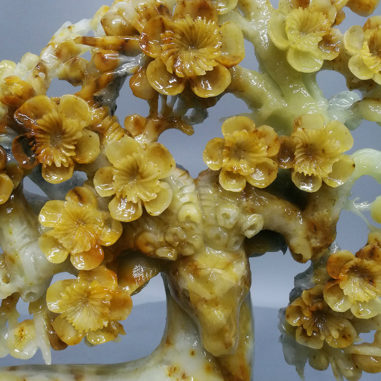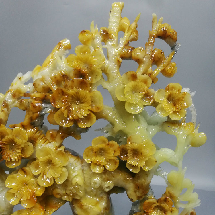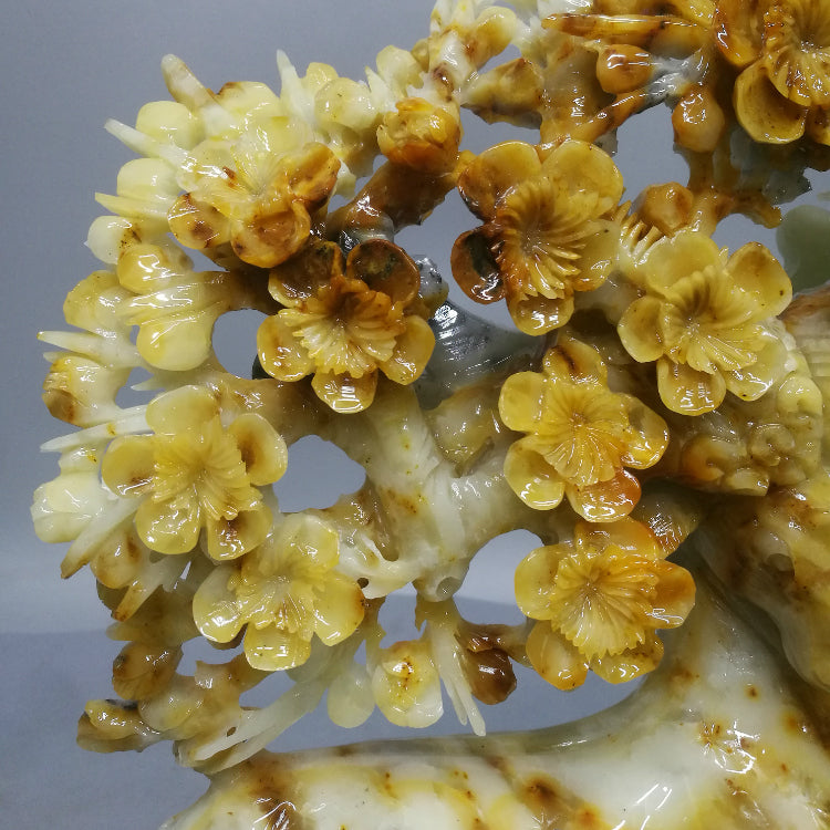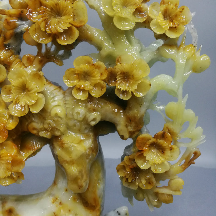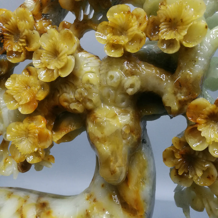 [name] Sika Deer [color] yellow [material] pure natural Xiuyu a whole jade carving [carving subject] deer plum blossom [size] net height 40 cm, net width 28 cm, net thickness 9 cm, with base 48 cm high, and the ornament weighs about 4500g