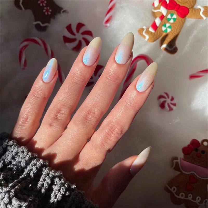 Pearl Rainbow Aurora False Nail Long Almond Press on Nails for Nail Art 24pcs