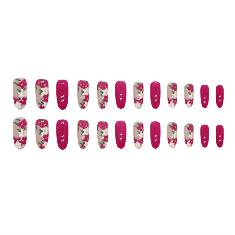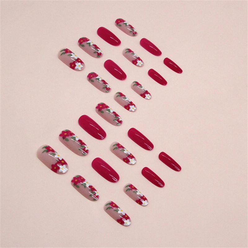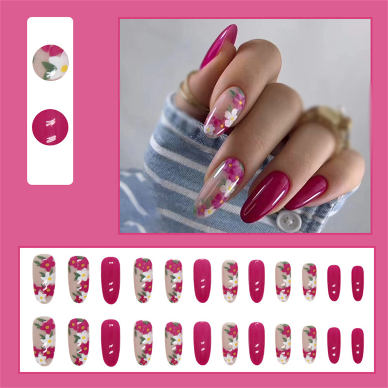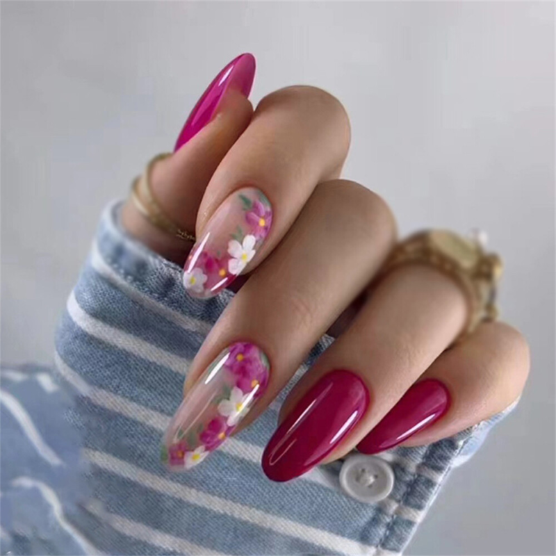 Retro Flowers False Nail Short Almond Autumn Press on Nails for Nail Art 24pcs