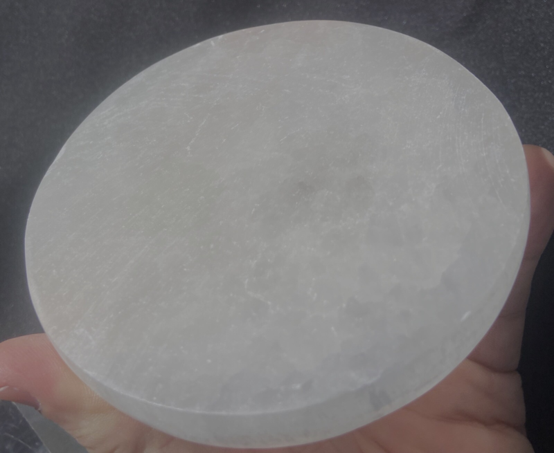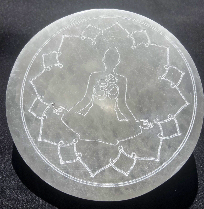 Selenite Crystal(Gypsum)Etched White Lotus Mediation Disk 246 Grams- 8.6 Oz's