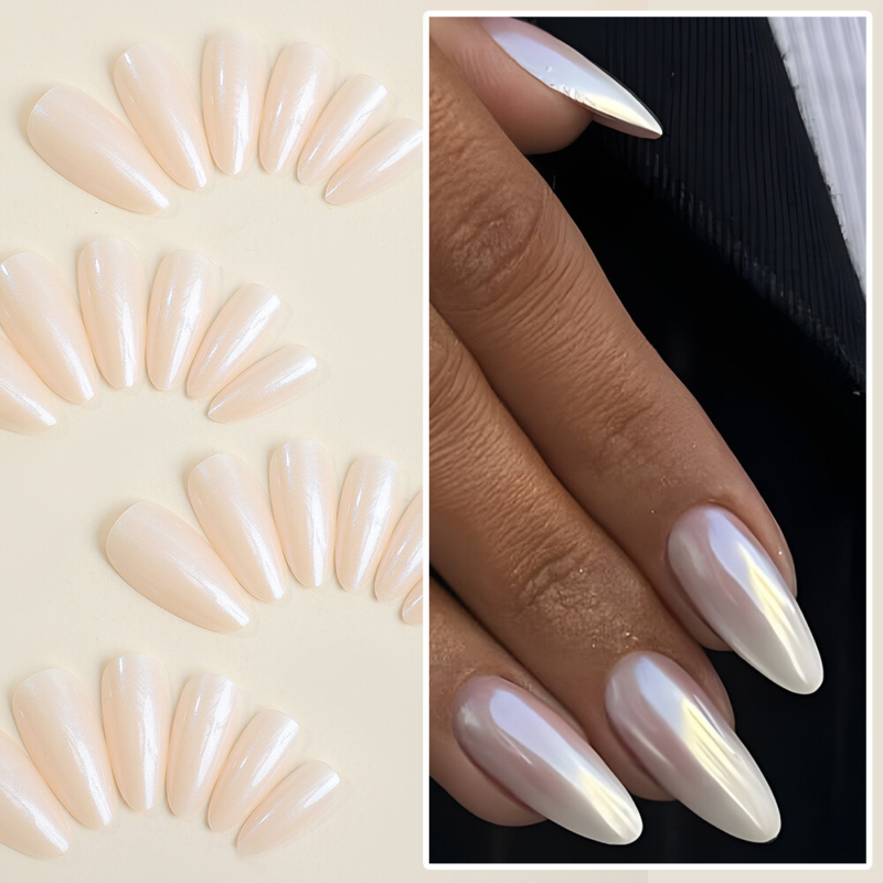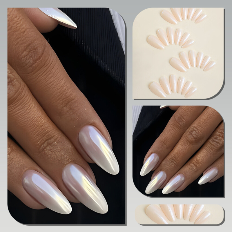 Shimmer Mirror Metal False Nail Medium Almond Press on Nails for Nail Art 24pcs