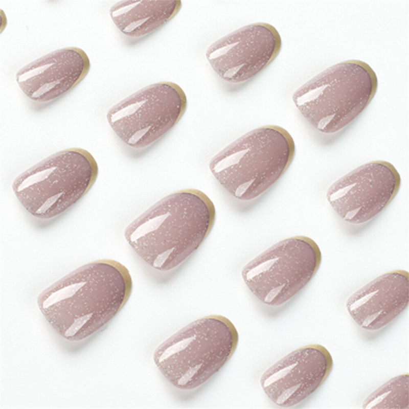 Shiny Gold French False Nail Short Almond Press on Nails for Nails Art 24pcs