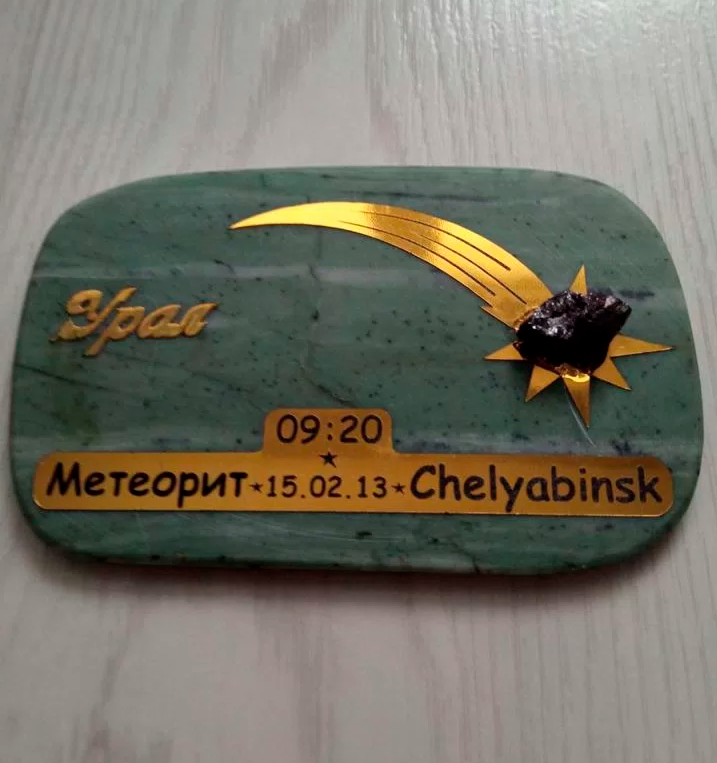 history with this Souvenir Fragment Meteorite Chelyabinsk 2013 Plaque.