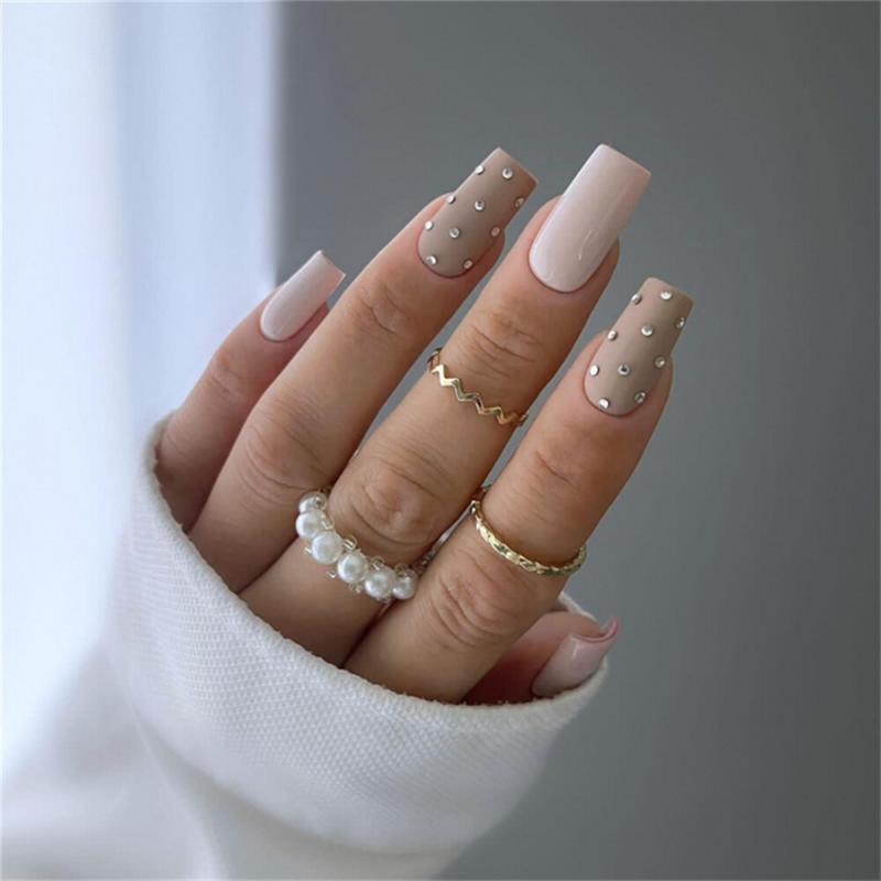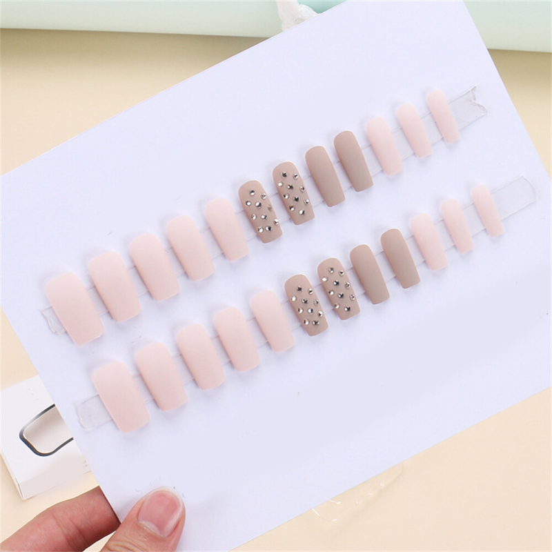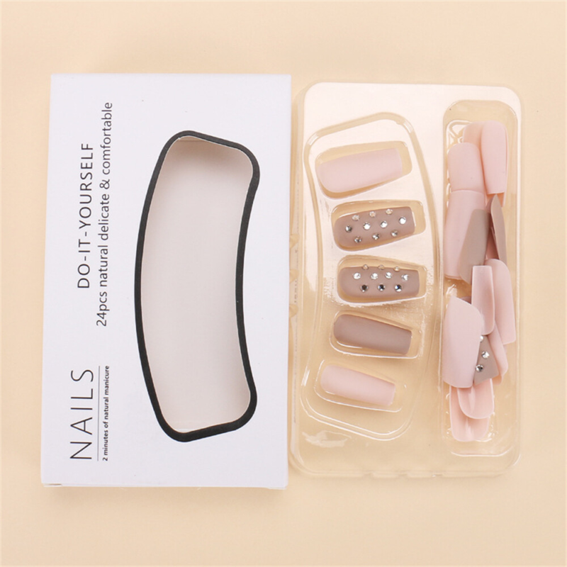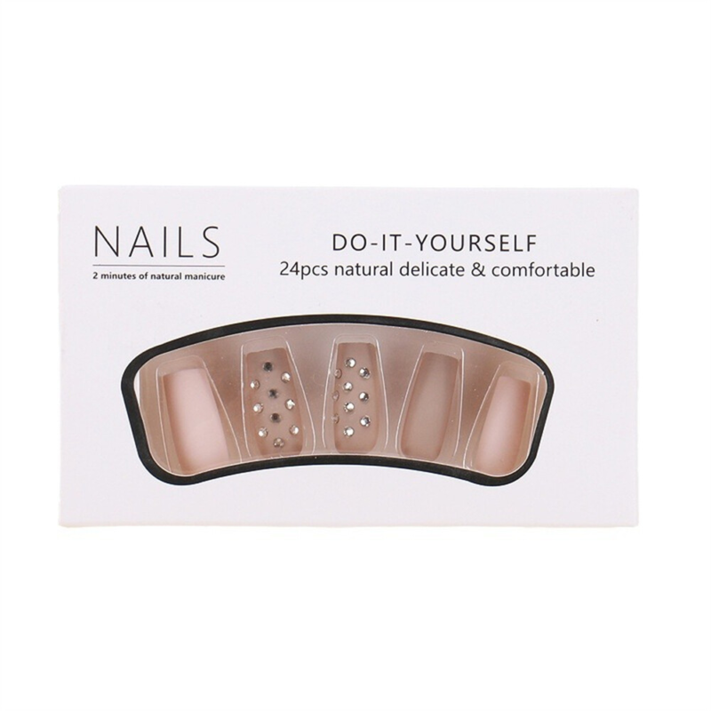 Square False Nail Nude Color with Diamond Press on Nails for Nail Art 24pcs
