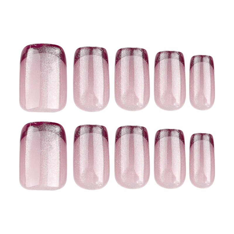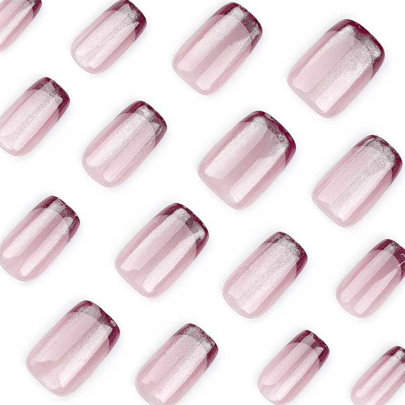 Square Short Press-On False Nail Nude Color Cat's Eye Red French Manicure 24pcs