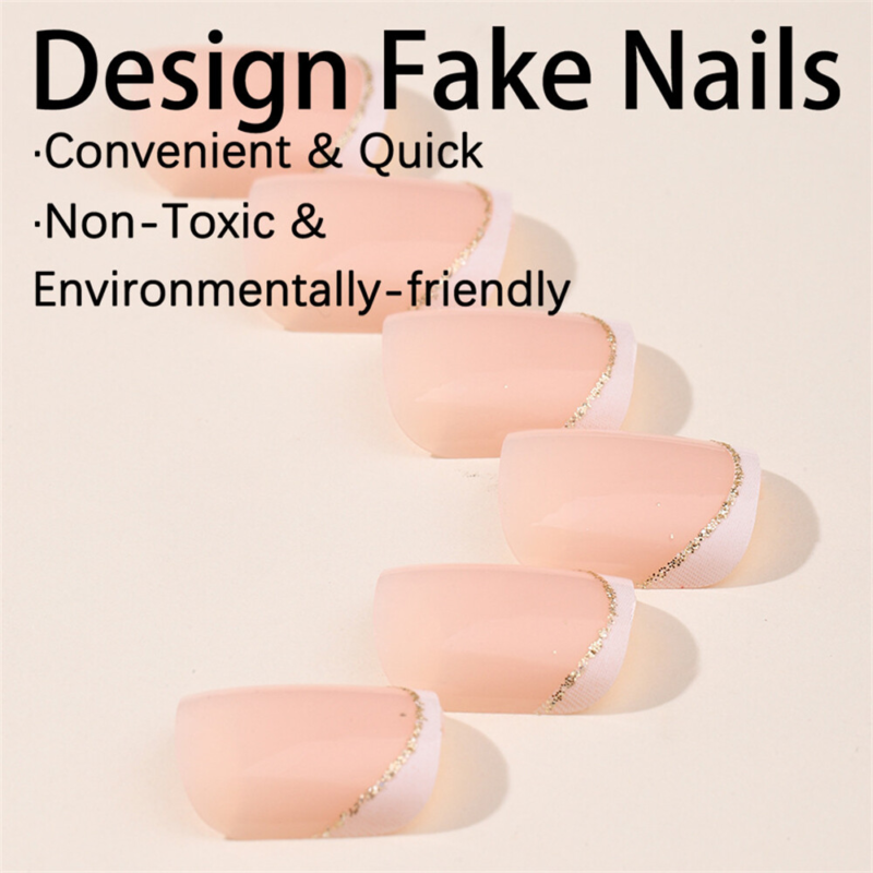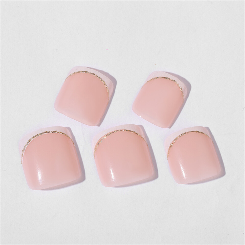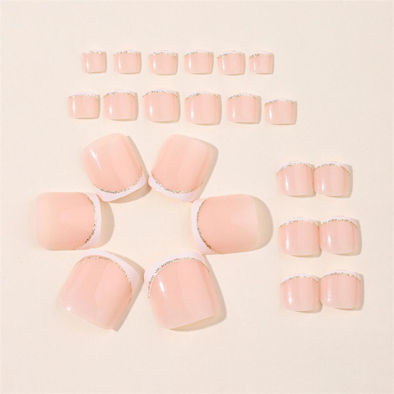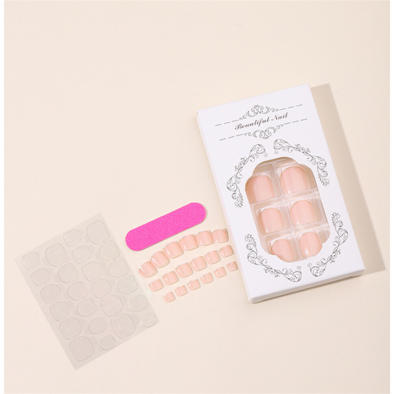 Stylish Nude Color Toe Press-On False Nail Glitter White French Pedicure 24pcs