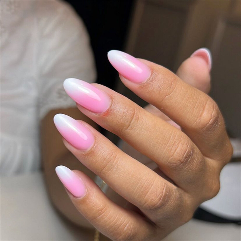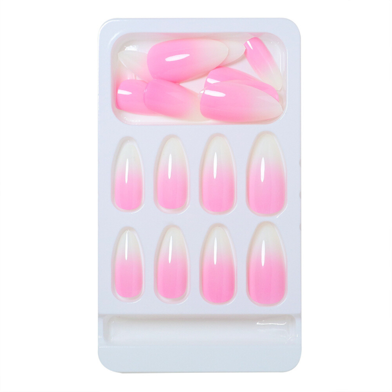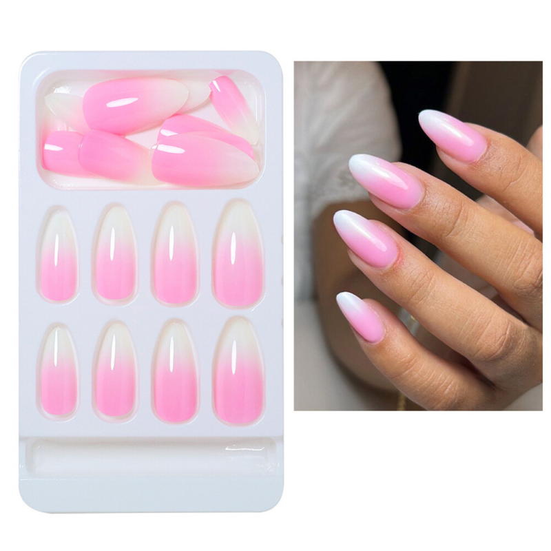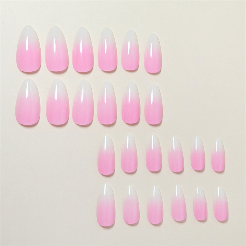 White Pink Gradient False Nail Short Almond Press on Nails for Nail Art 24pcs
