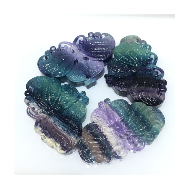 Wholesale Natural Crystal Rainbow Fluorite Crystal Carving Butterfly Buddha Pendant for Gift