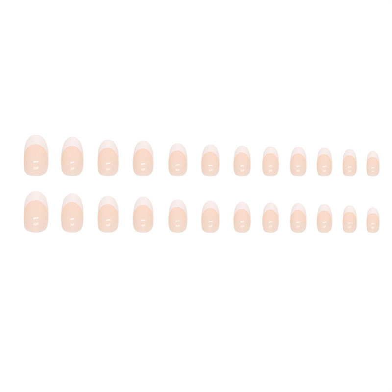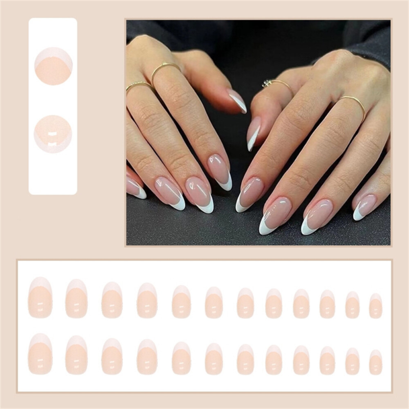 Winter French White False Nail Short Almond Press on Nails for Nail Art 24pcs